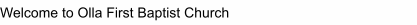 | | Times | | Wednesday | | 6:00 PM | | Prayer | | | Bible Study | | | Children's Ministry | | | Youth Ministry | | | | | | Sunday | | | | Sunday School | 9:45 AM | | Worship / Service | 11:00 AM | | Bible Study | 6:00 PM | | | | | | | | Office Hours: | | | | Monday - Friday | 8:00 AM - 12:00 PM | | | | | | | | | Address | 3153 Elm Street | | | Olla, Louisiana 71465 | | | | | | | | | Telephone: | (318) 495-5506 | | | | | | Email: | OFBC@centurytel.net | | | | | | | | | | | | | | | Pastor: Brother Dennis Baker | | | | Telephone: | (318) 719-8915 | | | | |